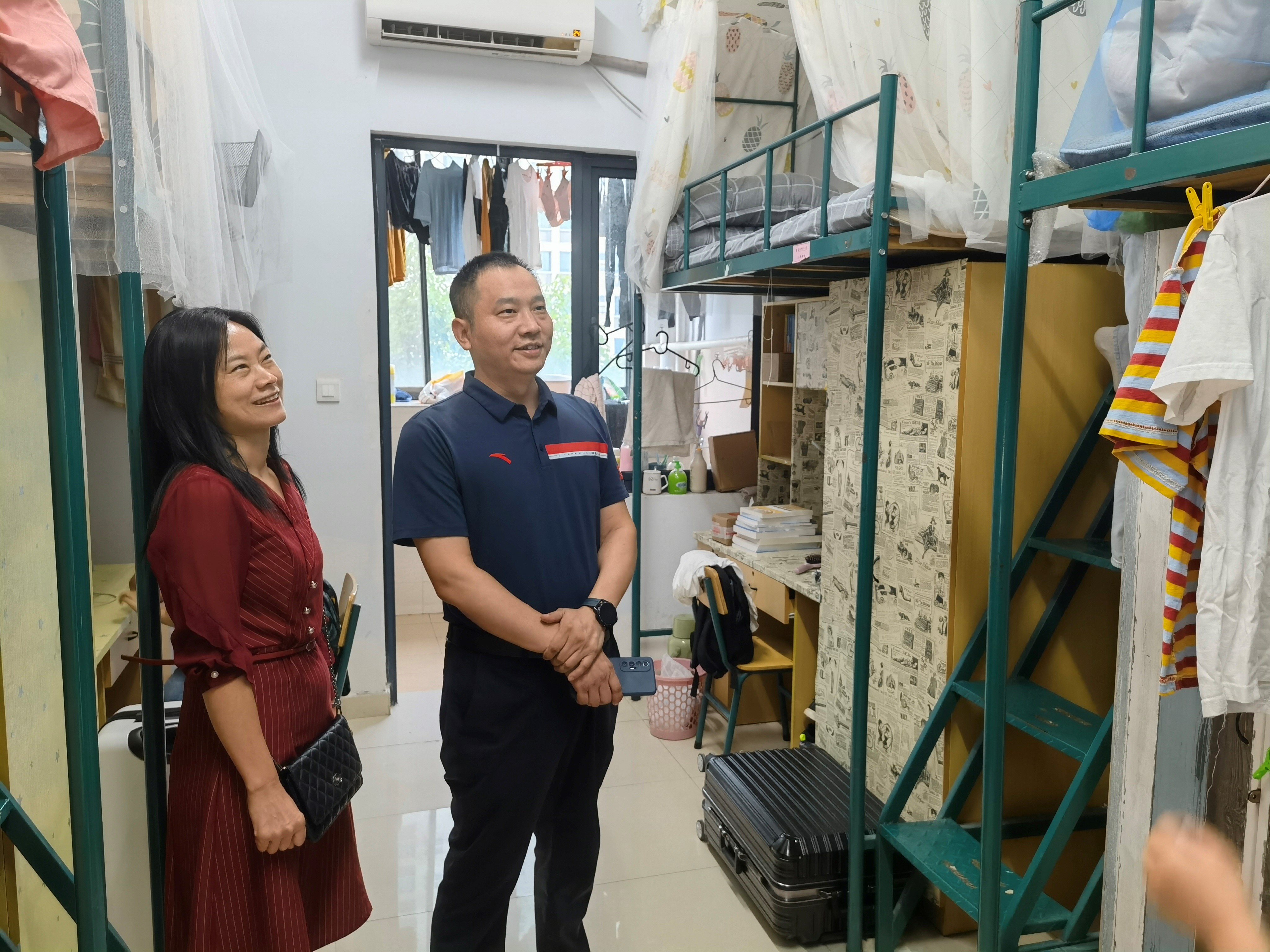 9月3日,beet365直属党支部书记夏宏武、副书记兼副经理程昭带领年轻教师在开学前对员工宿舍进行了走访。了解员工思想动态、员工暑期学习生活情况,及时关切员工报到后生活学习情况。