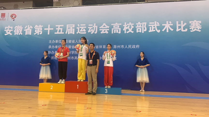 7月26日至29日,安徽省第十五届运动会高校部武术比赛在滁州市科创城文体中心手球馆隆重召开。公司代表团成员在教练的带领下下不畏强手,奋勇争先,经历四天的激烈角逐,最终获得一金二银一铜四枚奖牌,共获一等奖一项二等奖四项三等奖四项的优异成绩。