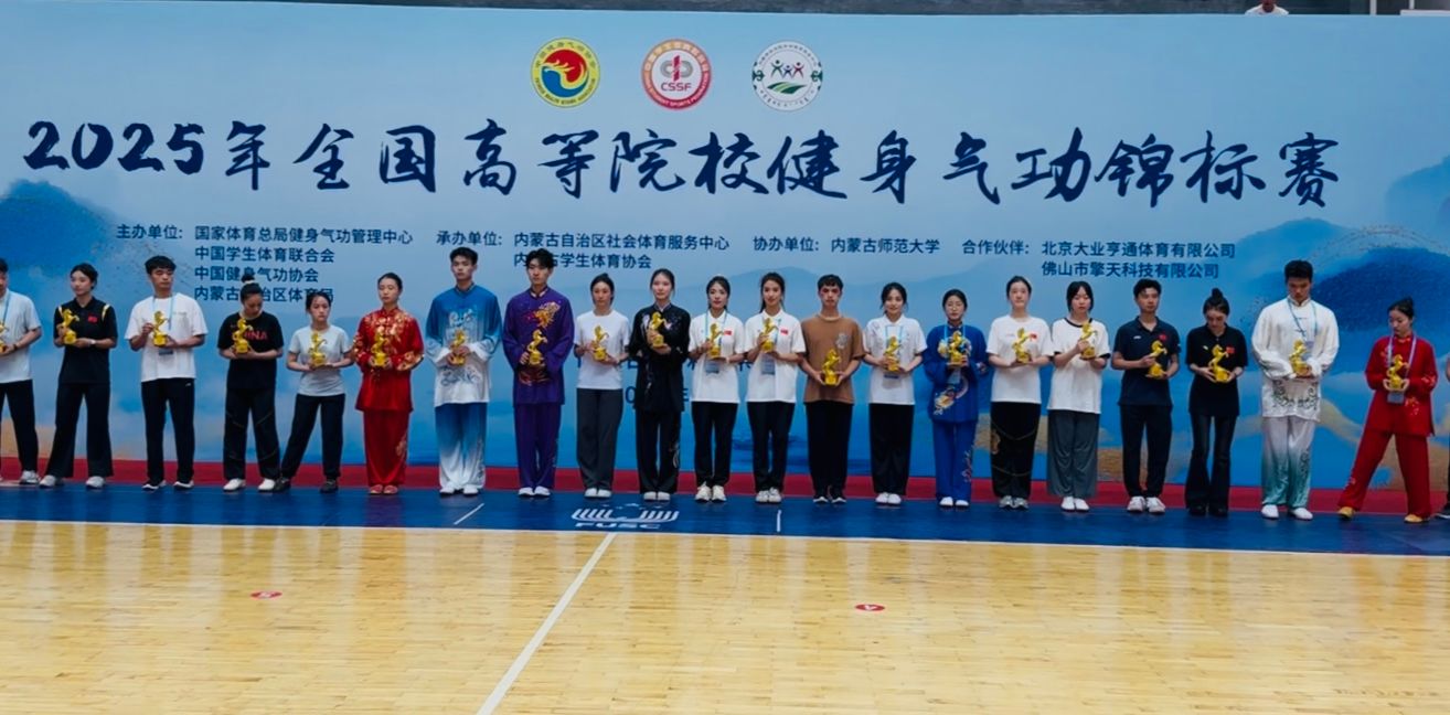 7月26日至31日,2025年全国高等院校健身气功锦标赛在内蒙古呼和浩特市隆重举行。本次赛事由国家体育总局健身气功管理中心、中国员工体育联合会、中国健身气功协会及内蒙古自治区体育局联合主办,汇聚了来自全国29个省市自治区的300余支高校代表队、1300余名运动员同台竞技。beet365官方网站代表队在领队beet365吴经理、教练唐传勤和李俊杰老师的带领下,沉着应战,发挥出色,最终斩获团体赛一等奖1项、二等奖2项,个人赛一等奖1项、二等奖3项,并摘得1枚银牌。