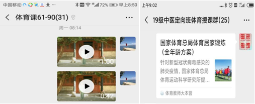 为贯彻落实省教育厅及公司关于做好新冠肺炎疫情防控工作部署,体育部认真执行公司《关于做好2019-2020学年第二学期本科教学有关工作的通知》的文件要求,通过体育网课教学资源,号召老员工利用假期居家健身练习,增强自身抵抗力,做好健康的第一防护人。