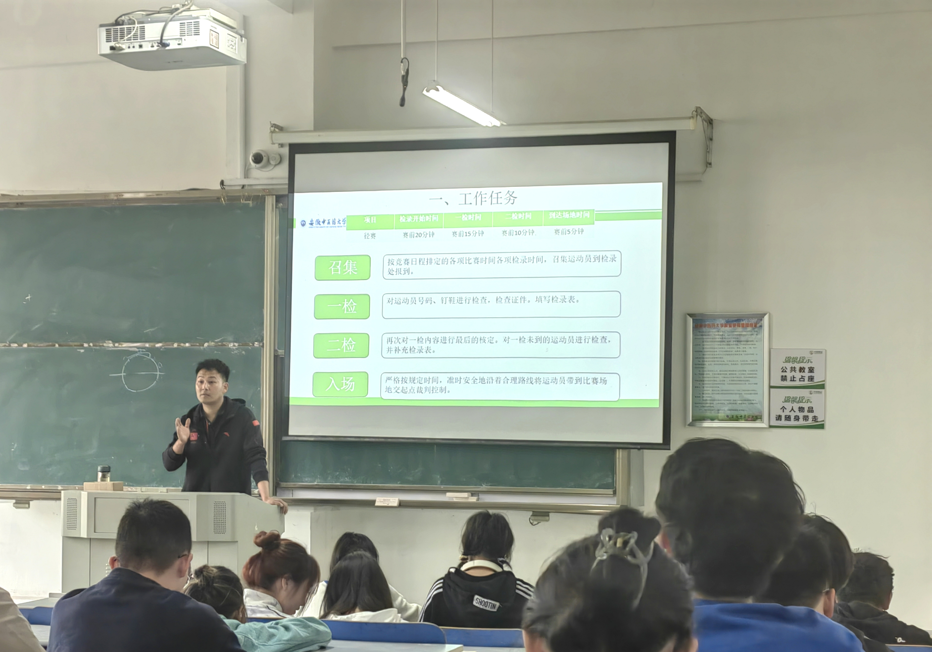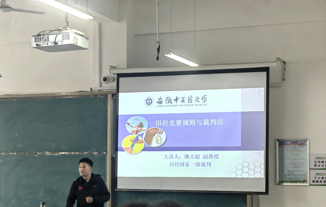 为保障beet365官方网站第八届田径运动会裁判工作的顺利进行,4月12日下午,国家田径一级裁判员、beet365副教授姚文超在少荃湖校区A112举办了《田径裁判规则与赛事服务保障》的专题讲座。
