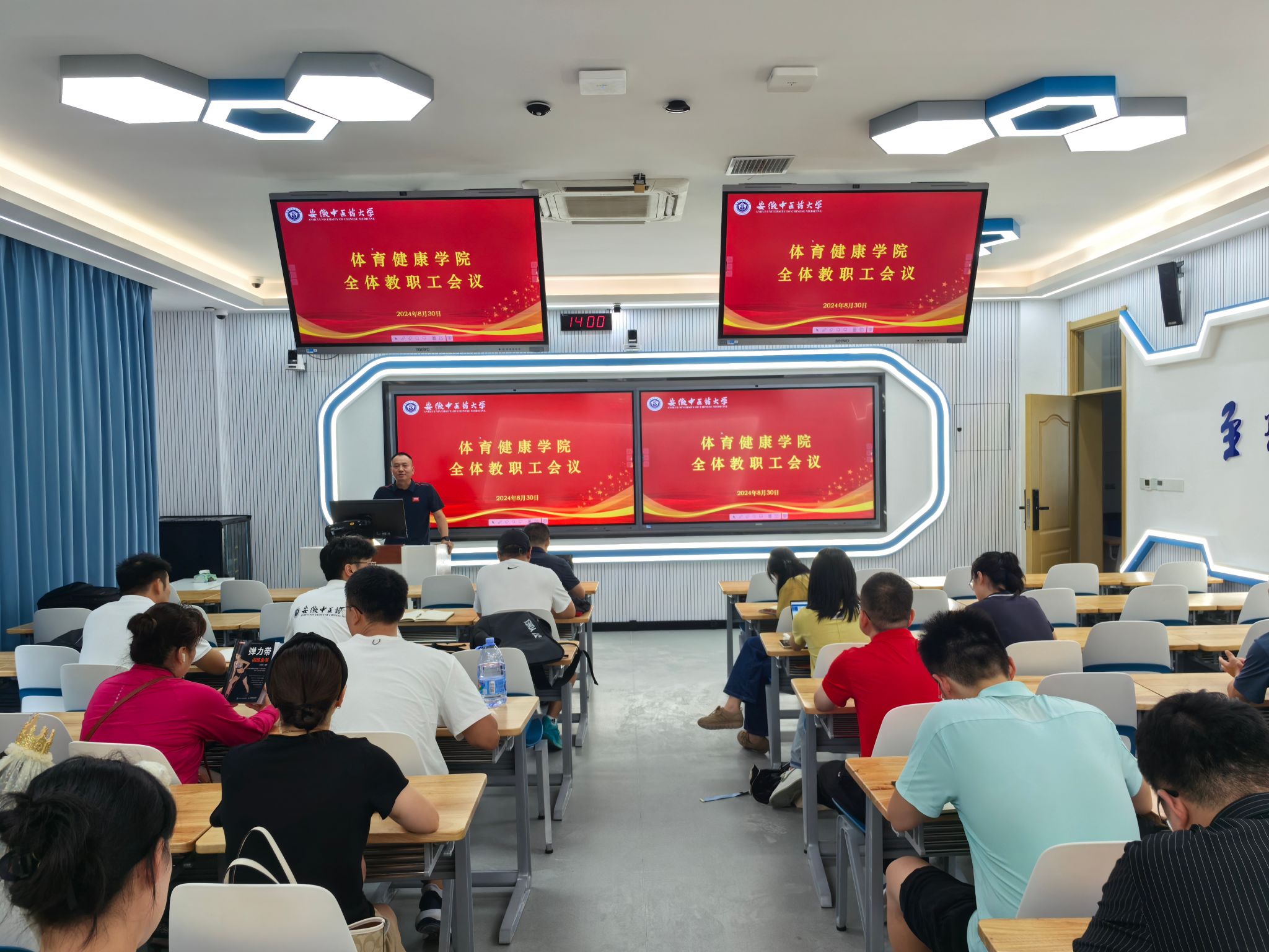 夏宏武对党建、行政、教学和科研等多个专项工作展开部署。强调加强院风、学风建设,全方位开展“三全育人”工作。指出,要提高体育教学质量,提升教师的专业素养和教学能力,加大对员工体质健康的关注和投入,推动员工体育活动的广泛开展,促进员工身心健康发展。