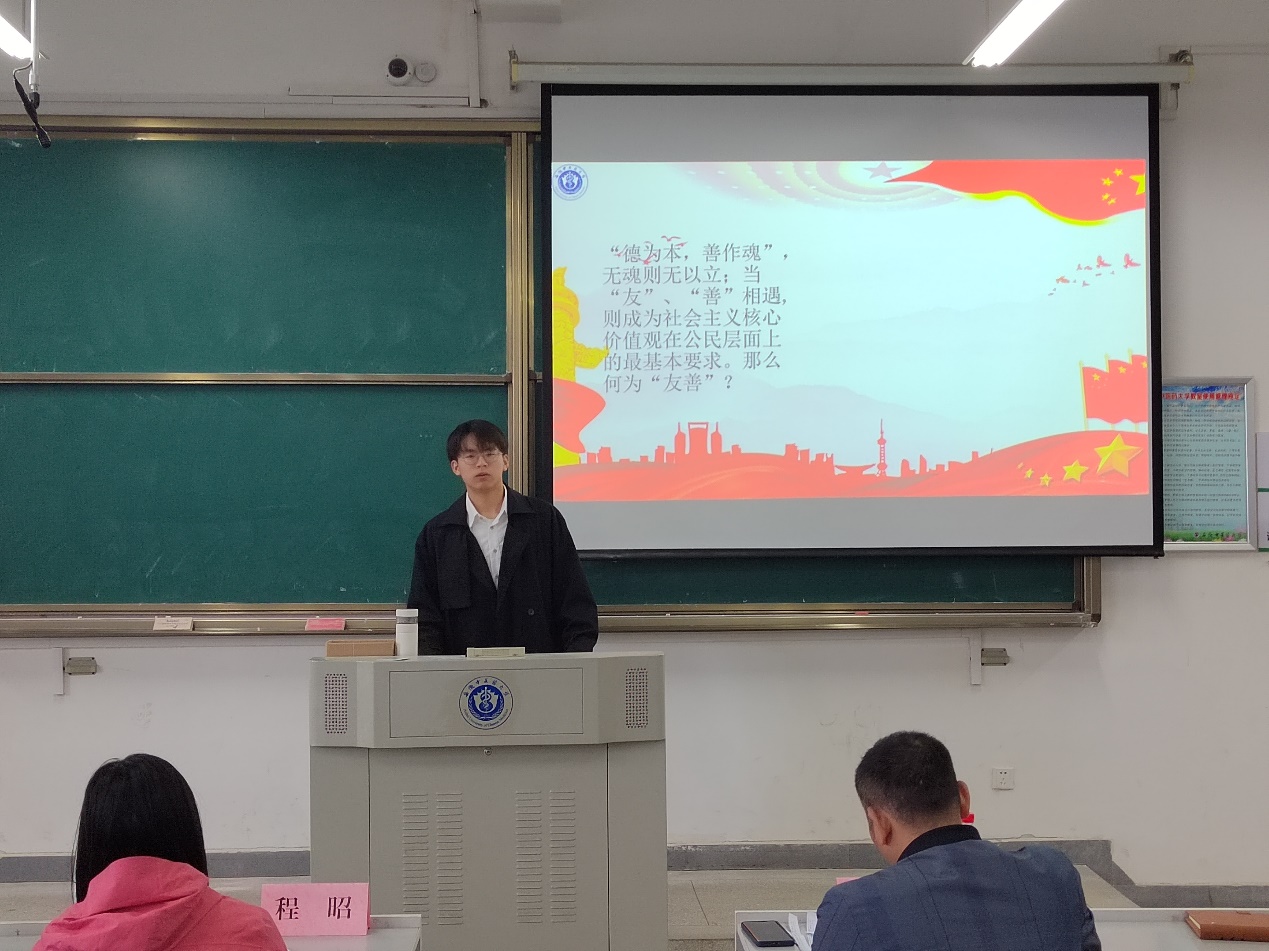 本次比赛以“社会主义核心价值观:友善”为主题,共七支队伍参赛。比赛现场,各团队围绕《毛泽东思想和中国特色社会主义理论体系概论》《马克思主义基本原理》《中国近现代史纲要》《思想道德与法治》《形势与政策》几门思政课相关章节教学内容,紧扣比赛主题、坚守政治阵地、发挥主体意识,将友善价值观的内涵、特征及基本要求,结合新时代思想理论文化重大主题和时事热点问题认真备课,精心组织授课内容、制作课件,开展了形式多样的现场教学展示。