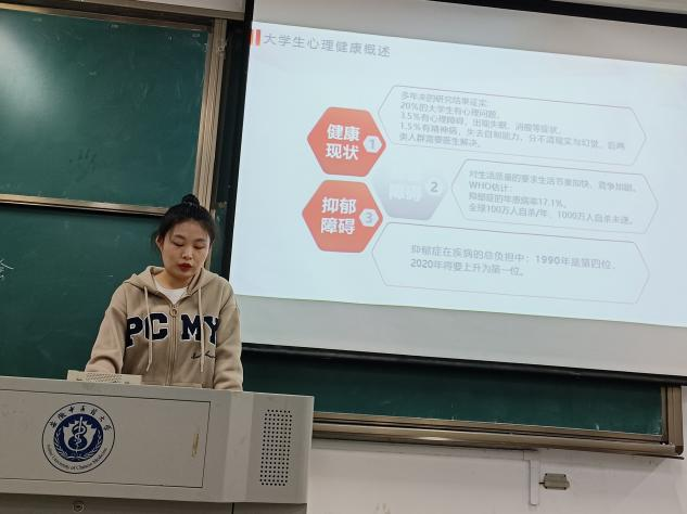 21级代雅婷同学围绕老员工心理健康问题向全体员工开展了主题为“让爱成长”的汇报讲解。活动中,代雅婷针对老员工常见的心理问题提出了十个解决办法,并与同学们讨论了老员工心理健康问题。