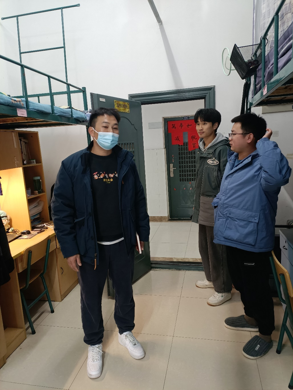 12月2日中午,beet365直属党支部书记夏宏武、组织纪检委员姚文超、宣传统战委员刘、教师代表、班主任及辅导员走进员工宿舍。