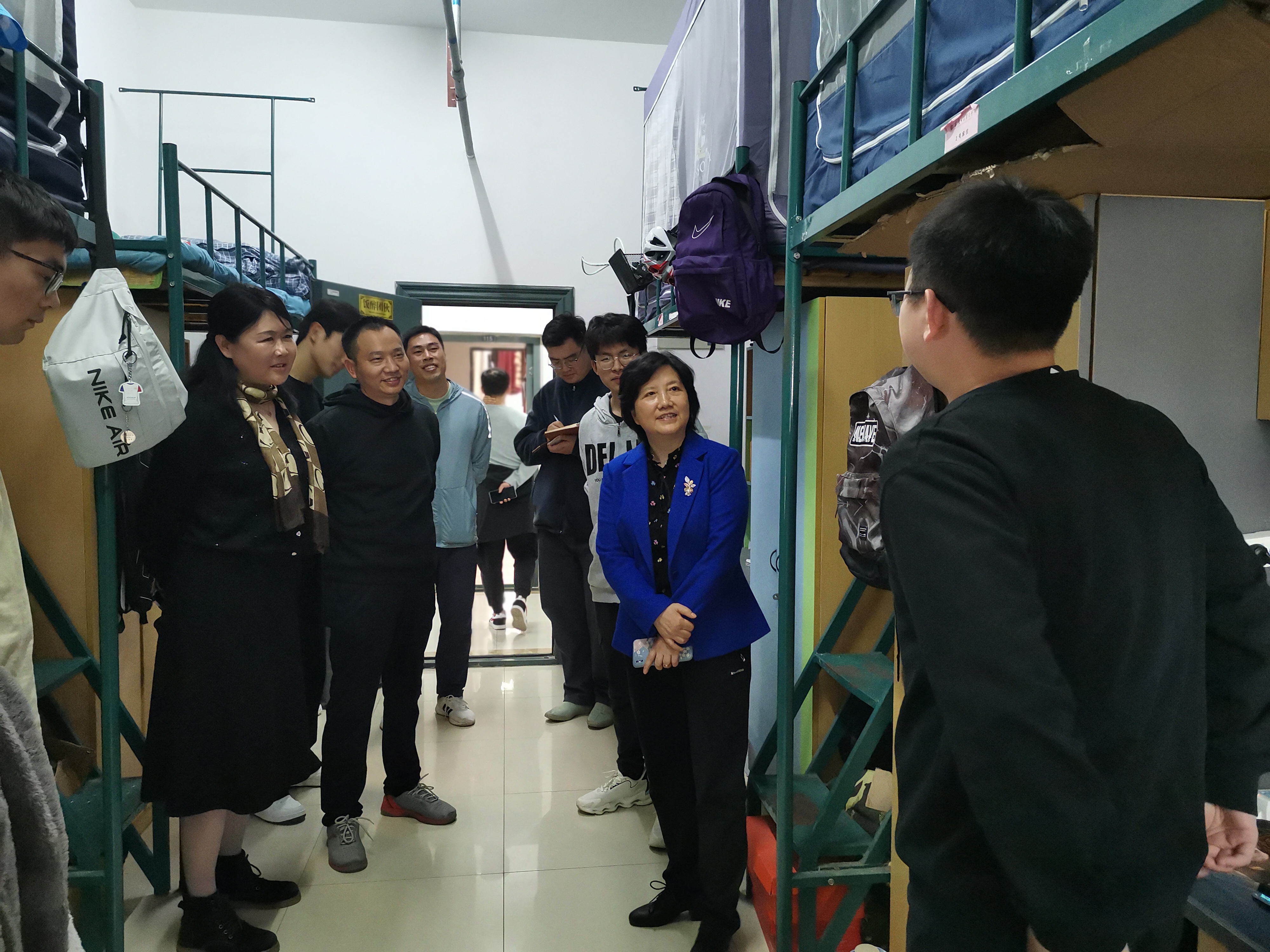 戴敏每到一间宿舍,都与同学们进行亲切交流,“你的家乡在哪里?”“学习上有什么困难?”“你对专业课程有哪些建议?”,详细了解同学们的学习、生活情况以及未来规划,反复叮嘱大家要珍惜“室友”这份难得的缘分,生活上要互相关心、互相包容,共同创造一个温馨舒适的宿舍环境,在朋友式的聊天中劝勉同学们要珍惜时间,培养兴趣爱好,努力提升自己专业水平,练就过硬本领,树立人生奋斗目标。走访过程中,师生脉脉温情和阵阵笑声在寝室中流淌。
