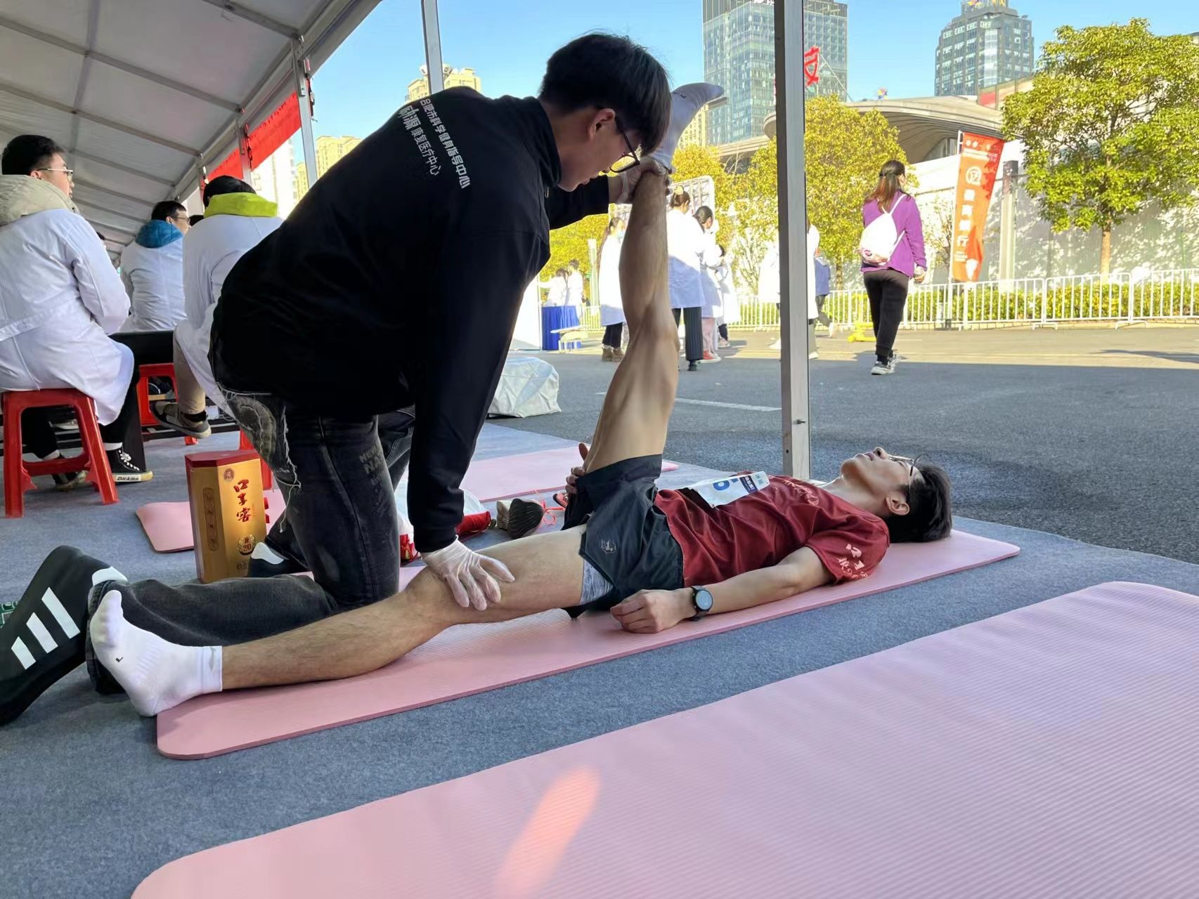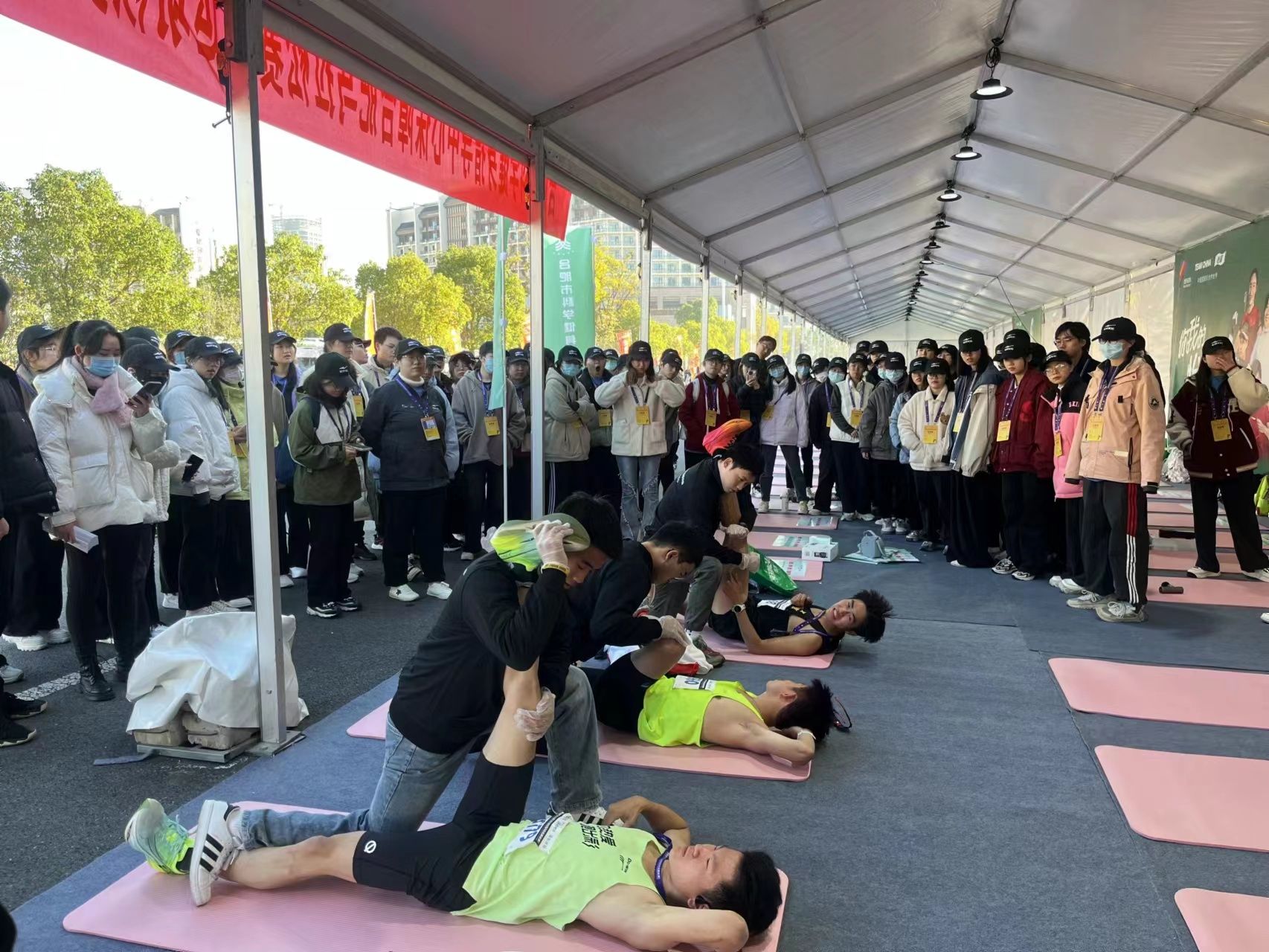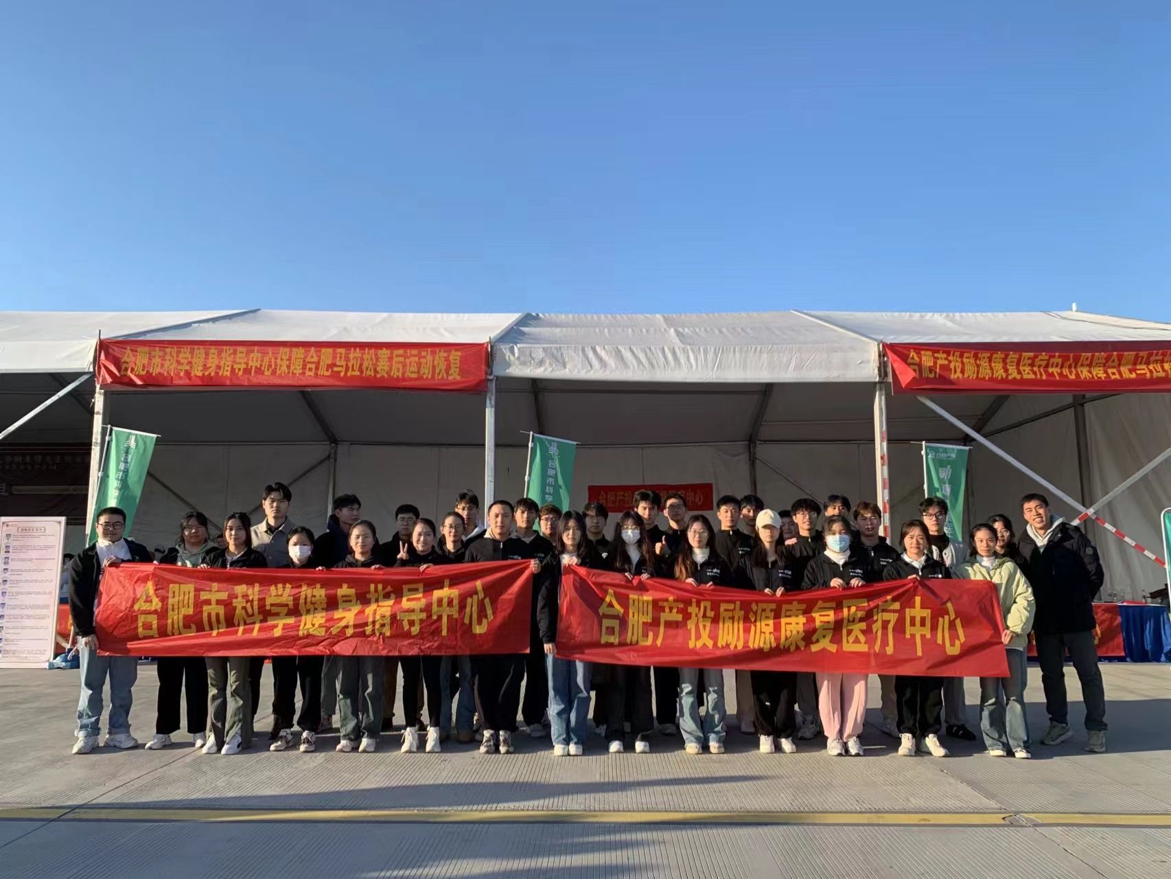 志愿服务期间,志愿者不仅在合肥产投励源康复医疗中心工作人员帮助下巩固加深了正确被动拉伸方法,学习并实践了新的运动康复知识而且积极融入到合肥国际马拉松赛事活动中,充分体会马拉松比赛的紧张与欢乐!