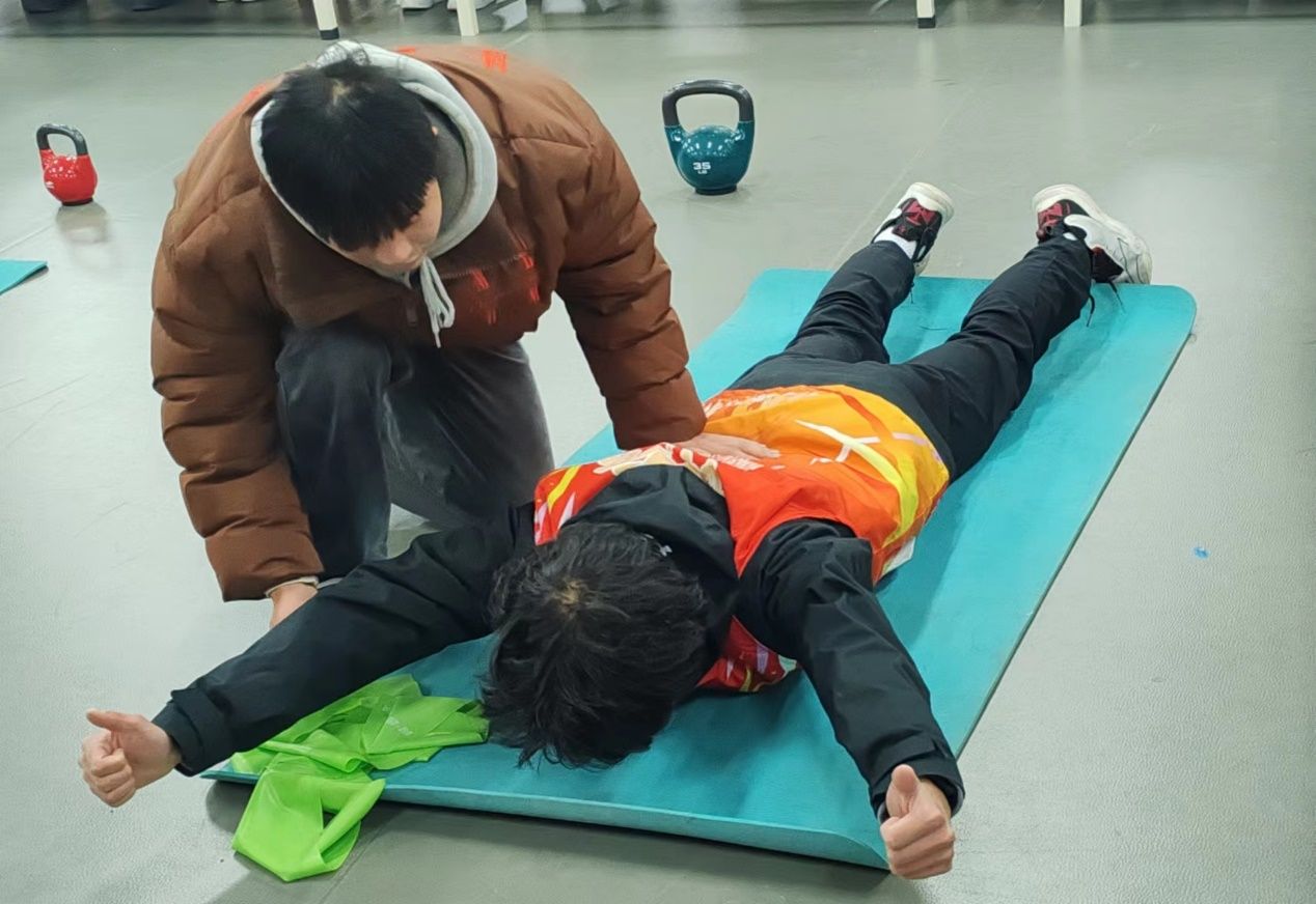 本次比赛共分三部分,第一部分是康复训练动作考核,包括俯卧位肩胛骨激活YTW训练、四点支持抬膝及进阶、双腿臀桥、双腿硬拉+负重、太空步训练等五种动作考核,主要考察选手们对康复训练动作的掌握情况和示范动作是否正确;第二部分是拉伸放松技术考核,包括前胸部/胸大肌拉伸、侧卧翻书/胸椎自我松动、臀部肌肉拉伸、腘绳肌拉伸、腹内外协肌拉伸、腰方肌拉伸等六种拉伸动作,主要考察选手拉伸放松动作是否正确;第三部分考核是按摩手法,由选手在沙袋上进行,主要考察选手是否掌握手部动作要领。最终,根据三部分考核总分进行排名,决出优胜者。