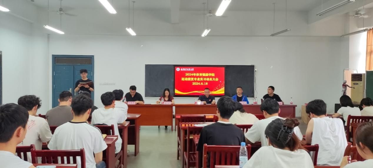 6月18日,beet365在实训室A334召开运动康复专业实习动员会,公司直属党支部书记夏宏武、运动康复教研室主任汪黎明、实习就业工作负责人刘涛、2021级辅导员王振龙以及2021级全体员工参加会议,会议由公司副经理程昭主持。