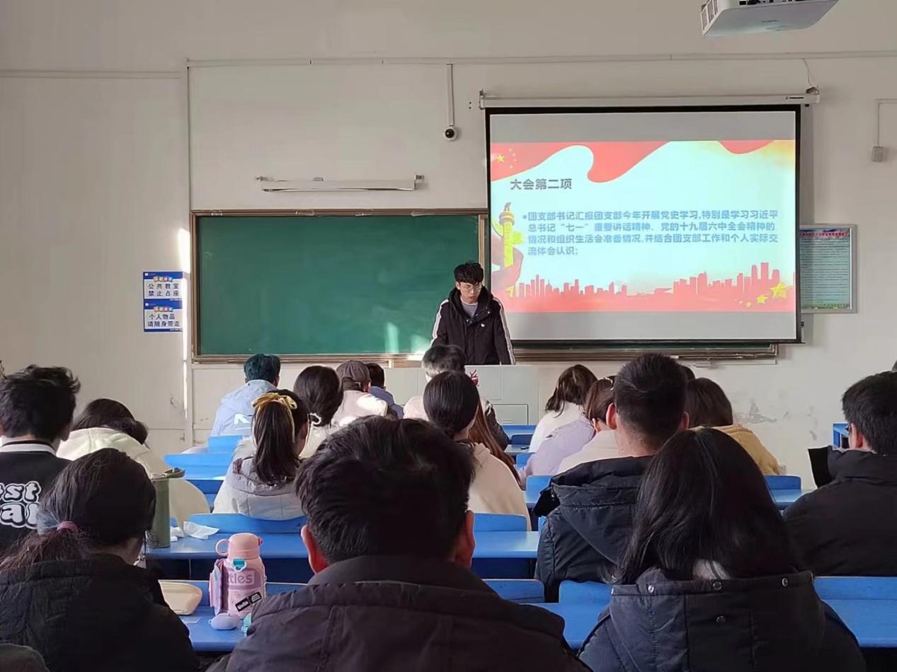 本次会议旨在落实“学史明理、学史增信、学史崇德、学史力行”要求,增强团员意识教育,提高团员的综合素质,进一步加强团员管理,强化团的基层组织建设。会议前期准备过程中,全体团员深入学习,认真撰写发言材料。会议伊始,所有参会人员共唱团歌。随后,吴永强汇报团支部今年开展党史学习,特别是学习习近平总书记“七一”重要讲话精神、党的十九届六中全会精神的情况和组织生活会准备情况,并结合团支部工作和个人实际交流体会认识。鉴于参会团员过多,故在本次组织生活会上各团小组先召开了团小组会议,各团员进行发言讲话,并推选出代表在组织生活会上发言,刘涛老师进行点评。最后,吴永强作为领誓人带领全体参会团员重温入团誓词。